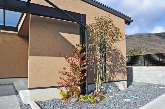 「初めてのエクステリアをまとめてお願いしたのですが、非常に対応が良くて助かりました」とT様。自分で選んだものがイメージ通りに配置されて、大変満足した様子でした。