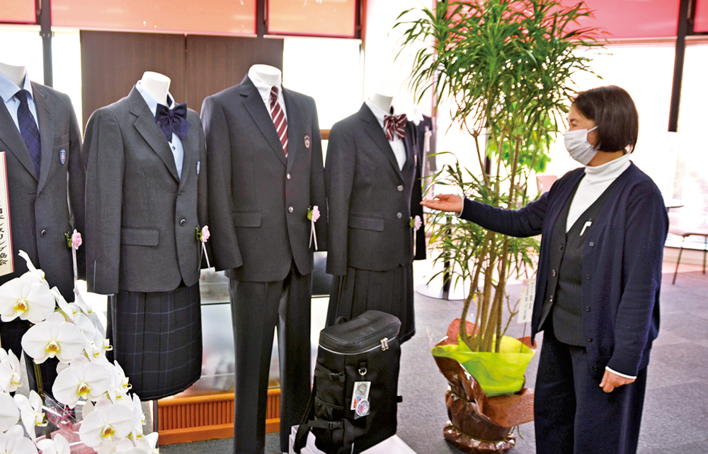 最近の学生服の傾向として、ブレザーへの切り替えが増えているそうだ。女子もズボンに対応でき、あわせも同じにした男女共用の学校もある。「社会の情勢にあわせ、地域から必要とされる店にしていきたい」と語る。