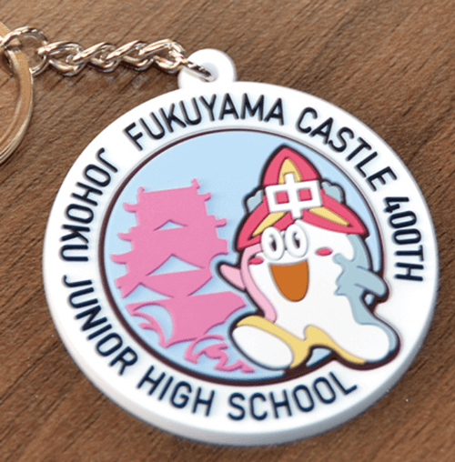 バッグチャームは、生徒のデザインを元に、福山城築城400年のイメージを加えた