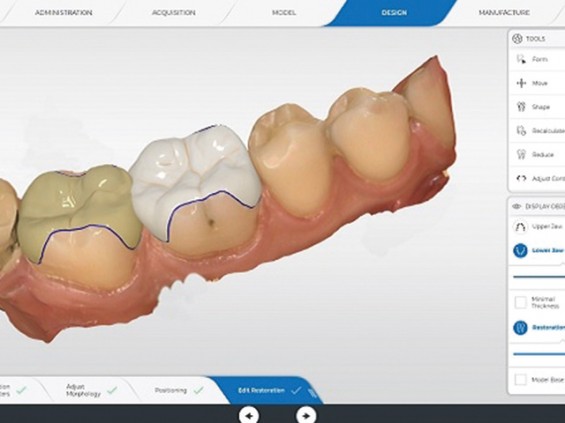 歯に専用の光をあてることで歯型を再現し、デジタル表示させ、そこから歯冠修復物や矯正器具を作成するというものです。これまでのアルジネートで歯型を取らなくてよいのです。