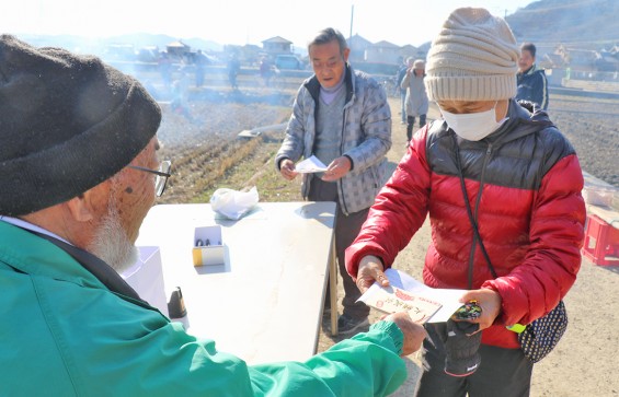「この地区にも初春の行事を」と始まって10回目の今年、特別企画の手作り絵馬を企画して配布です。