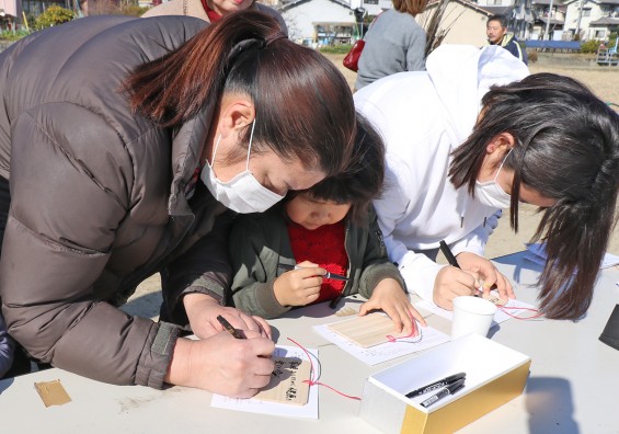 田頭萌衣さん(城北中1年)と佐道美優さん(泉小5年)は「絵馬に願いを書いたので叶うといいな。地域の人が集って楽しい」と、とっても楽しそうでした。