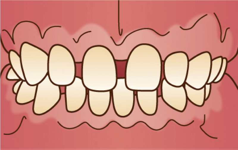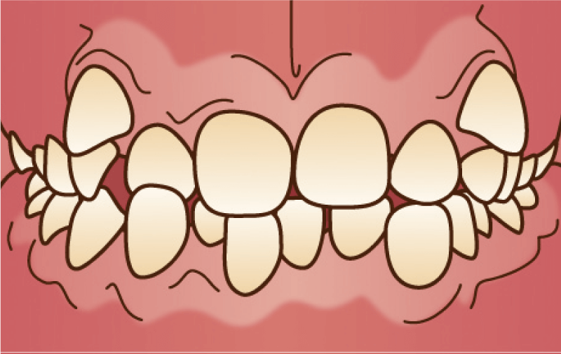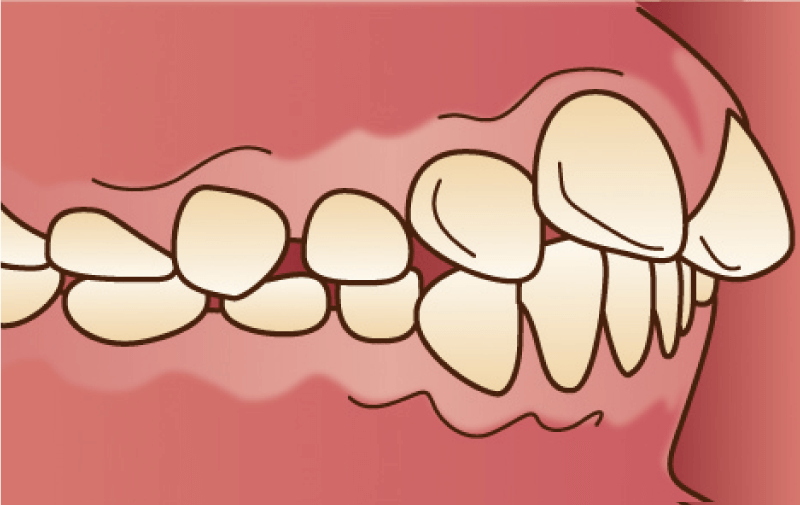 部分矯正に向いている症状としては、左の図のような比較的軽度のものがあげられます。これらは部分矯正での対応で済むことが多い症例ですが、「出っ歯」はあごの骨が原因になっている場合も多いので、その場合には全体矯正が適切です。