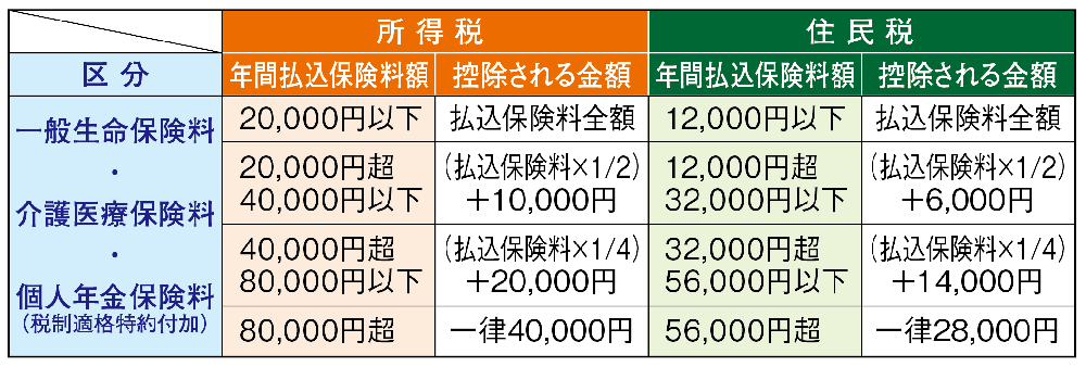 ■年間払込保険料と控除される額(年間払込保険料は、その年の1/1〜12/31までに払い込んだ保険料)