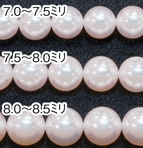 真珠を選ぶポイントはいくつかありますが、その中でも分かりやすいポイントとして「大きさ」「テリ」「長さ」の選び方をご説明しましょう。