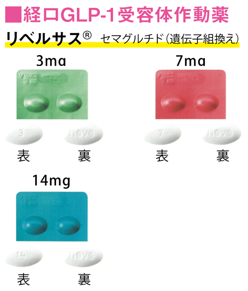 GLP-1はそもそもペプチドホルモンであり、胃からの吸収効率が悪く、これまで発売されたGLP-1受容体作動薬は、全て注射薬でありました。しかし、SNACという技法を用いて吸収促進剤を添加することで、胃からの吸収効率が飛躍的に向上し、昨年、一般名セマグルチド(商品名リベルサス)という経口血糖降下薬となって登場しました。ただ経口薬ではありますが、用法及び用量における注意事項があり、1日のうちの最初の食事又は飲水の前に、空腹の状態でコップ約半分の水(120㎖以下)とともに1錠服用すること、と添付文書に記載されており、また、他の薬剤と同時に服用しないように注意が必要です。これらを厳密に守らないと、GLP-1の効率的な吸収がなされず、その結果、十分な血糖降下作用が得られない可能性が高いので、患者さんへの服薬指導は重要です。
