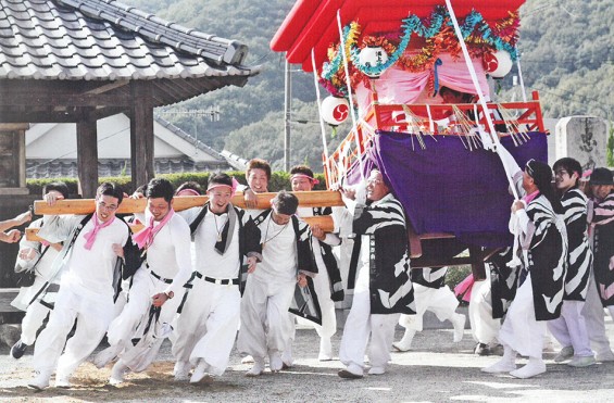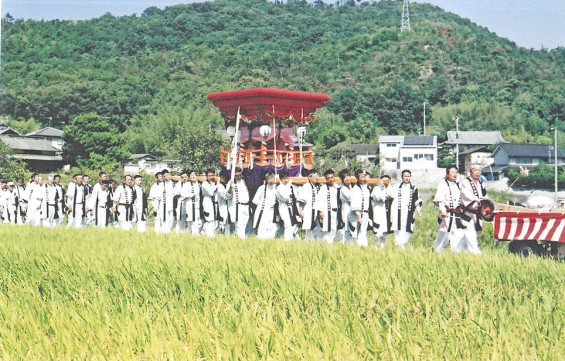 春日町浦上地区に鎮座する浦上八幡神社の秋季例大祭で、地域を練り歩く神輿。それが千歳楽です。
