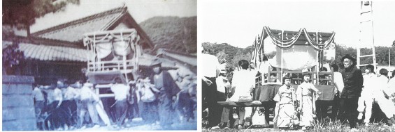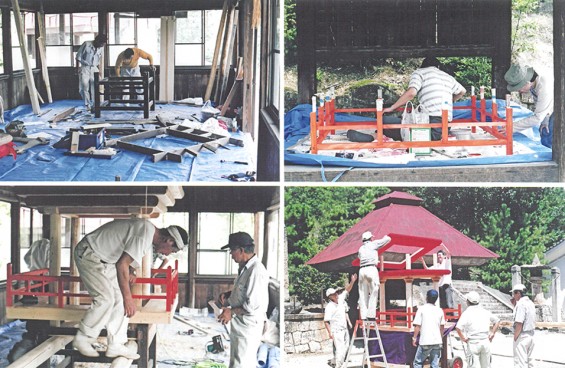 地域によって布団太鼓、チョーサイなどと呼ばれる、この千歳楽は、明治末期から大正初期頃に始まり、青年団が担いで活気付けてきました。