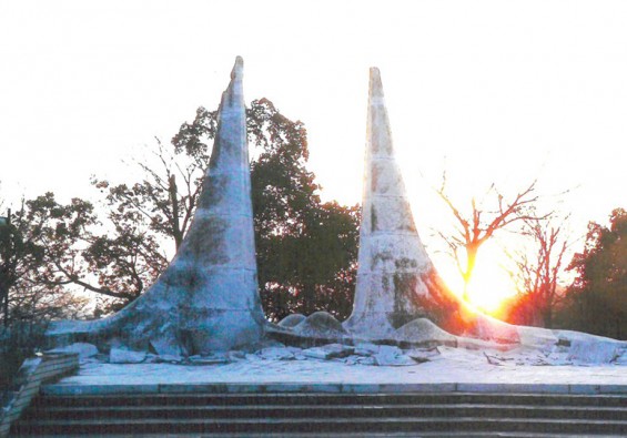 【寄付されたヒノキを伐り出し、復活委員会メンバーらで力を合わせて千歳楽を再現】