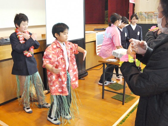 川口小学校(川口町/池田正道校長)の5年生87人が先月25日の参観日に合わせ、初めての「ワールドフェス」を開催。日本を含めて10ケ国のブースを体育館に並べ、各国の伝統文化を保護者や地域の人に体験してもらった。