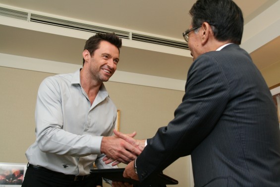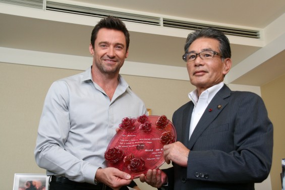 映画のロケが、昨年9月に福山市の鞆の浦や福山駅前などで行われ、撮影期間中、家族と一緒に鞆に滞在したヒュー・ジャックマンさんは「福山は素晴らしく美しい街。市民の皆様には暖かく迎えていただいてすばらしい時間を過ごした。」と振り返り、映画の主人公の「ウルヴァリン」として福山市の羽田皓市長より福山観光大使の委嘱状を受け取りました。