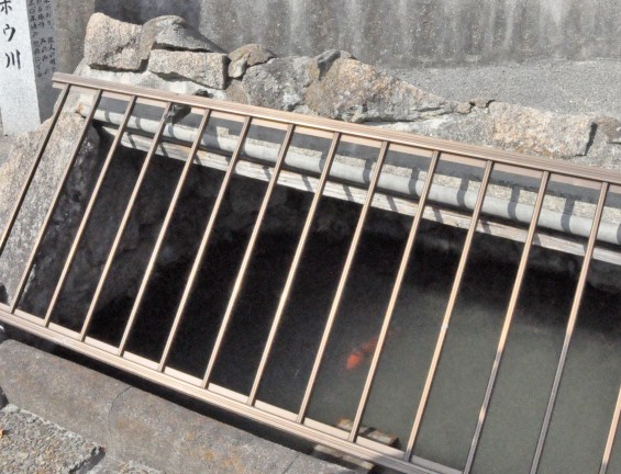 ▲セイゾウボウ川を覗くと鯉が泳いでいました。いまは安全面に配慮して柵をしてあります