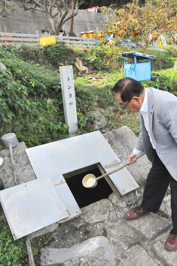 井戸は“川”と呼ばれ、地域の水場として現在も残っているドーノキ川、トンコ川、高木川、妙見川、松室川、ハタ川、セイゾウボウ川の7つは「水呑の七泉」として史跡になっています。私の子どもの頃は、近くの井戸が共有の炊事場のようになっていて、スイカを冷やしている人なんかもいました。今では飲み水にこそ使わなくなりましたが、畑や庭への散水に使われている井戸もあります。庭に井戸がある住宅が多いのも水呑ならではです。