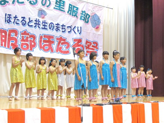ほたる祭は、子どもたちの幼な心に故郷の思い出を刻んでもらいたくて、地域で乱舞していたホタル を主役に、おとなたちが始めました。2年目の1991年には、町民150人で「服部の自然を守る会」を発足させ、ホタルの保護活動や環境改善活動も開始。現在は、子どもたちも積極的に加わっています。