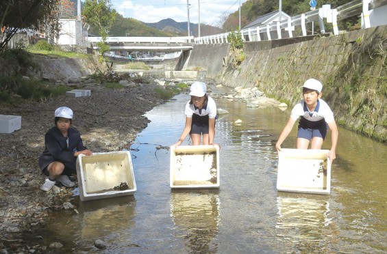 ▲昨夏の豪雨の影響が心配ですが、今年もたくさんのホタルが舞うように、昨年11月に服部小学校の児童が幼 虫を放流しました。