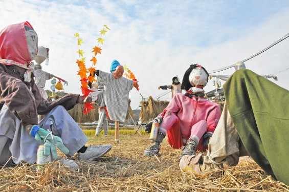 東村と言えば「かかし」です。今年も12月1日に74回目の東村町かかし祭りを終えたばかり。町内には約100体の手作りかかしが並び、主会場の東村小学校では仮装かかしに、かかし着付け競争など、恒例イベントが展開され、延べ3000人が大笑い。