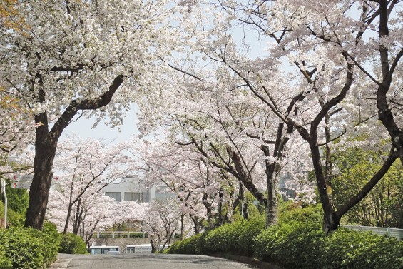 桜並木が見事な桃色のアーチを作るキャンパスは人気の花見スポットで、親子連れも多く訪れます。大学では学生を対象に「福山大学の桜」という名でフォトコンテストを毎年開催しています。