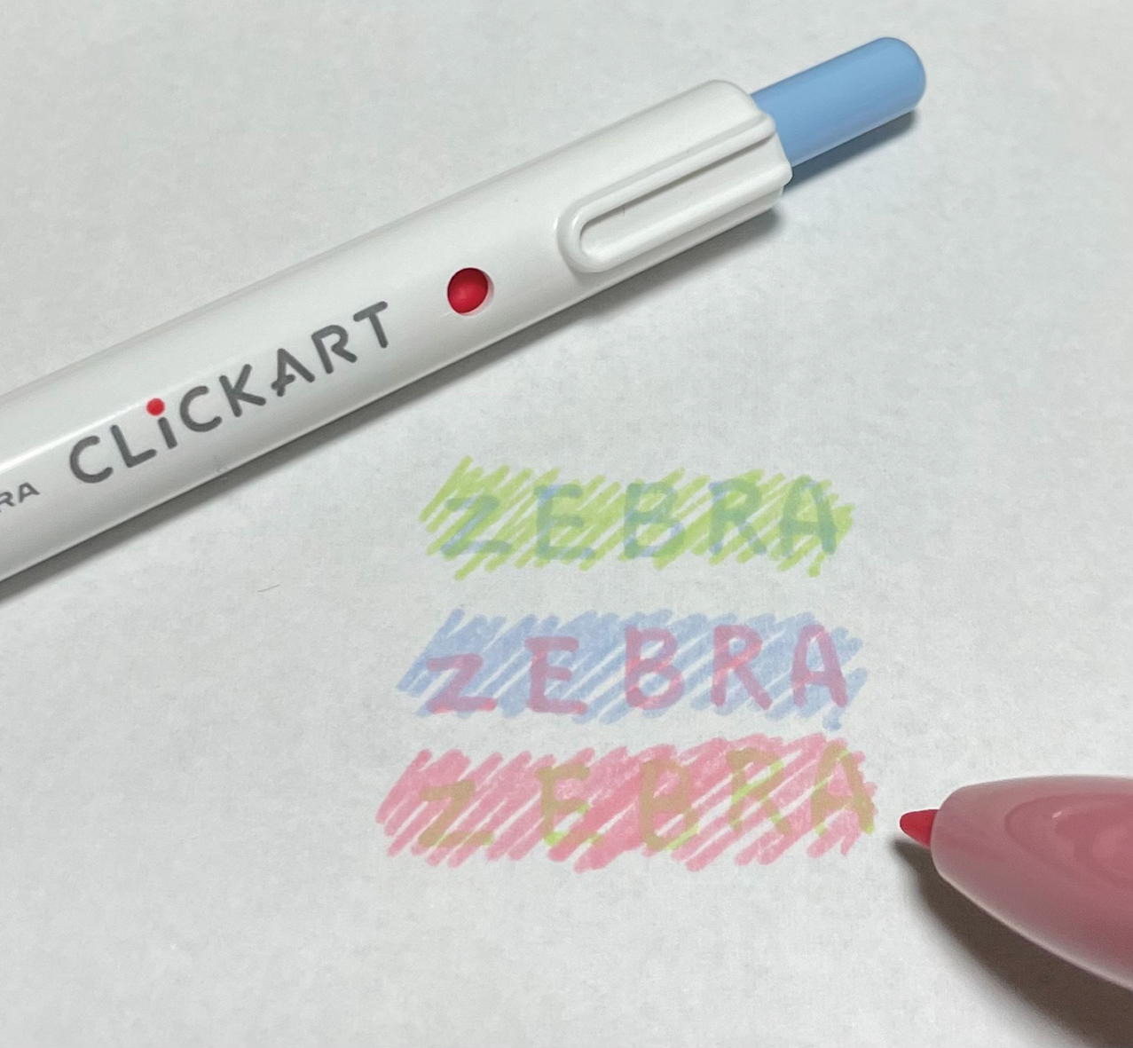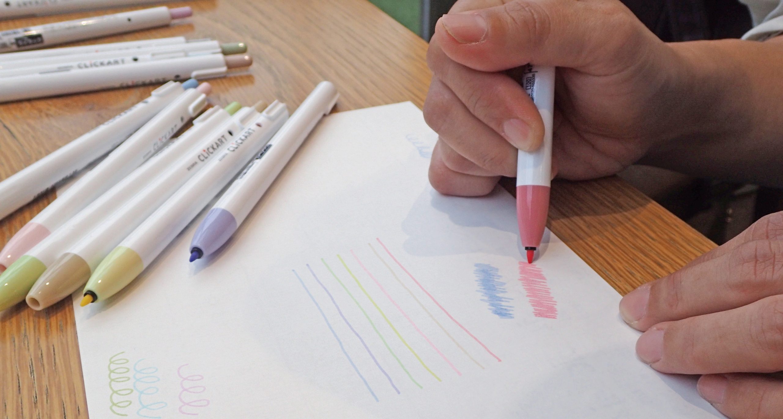 キャップの要らないノック式水性カラーペンに、新色が発売されたということで使ってみました。