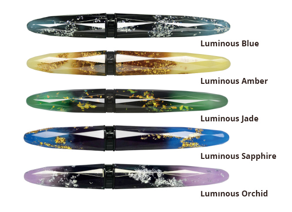 次に、ブリオレットルミナスシリーズ。ダイヤモンドみたいな多面カットを施した軸はいろんな角度から光が反射して独特な雰囲気を醸し出してくれます。