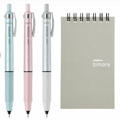 〝しなるペン先”を搭載した「ビモアボールペン」とメモ帳感覚で取り組みやすい「ビモア練習帳(QRコードが印刷されていて、スマホで動画を閲覧できる)