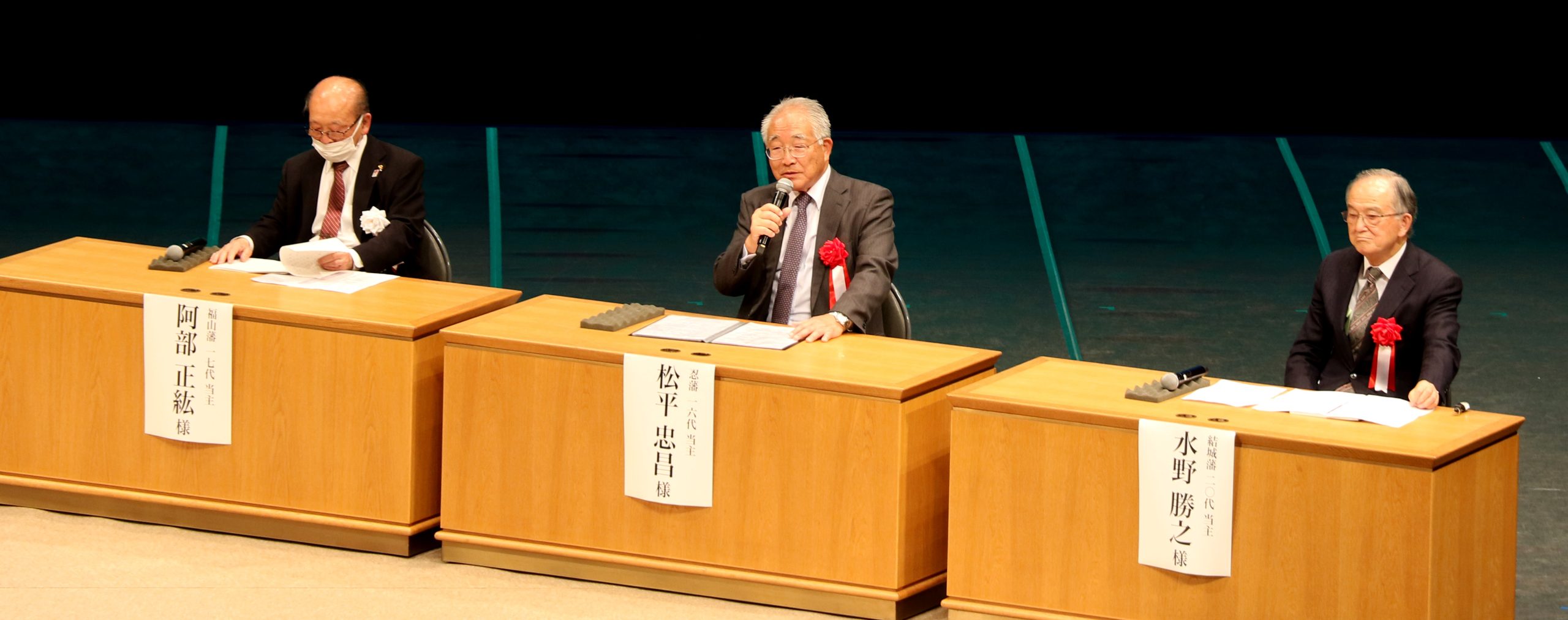 これまでは研究者による講演がおこなわれてきたが、福山城の城主だった3家の当主がそろい、初めて企画されたという。