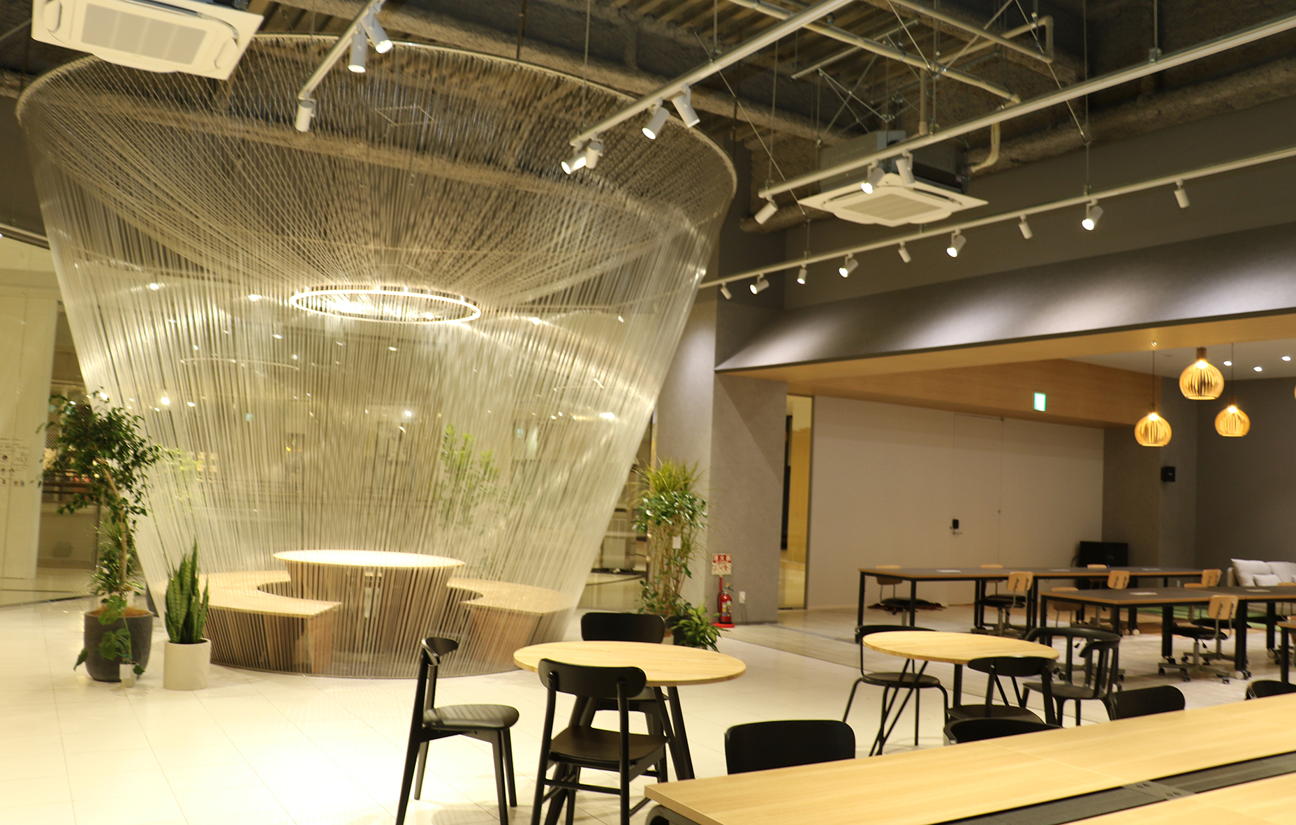 その半分が飲食や物販のテナントエリア、残る半分がワークエリア。
