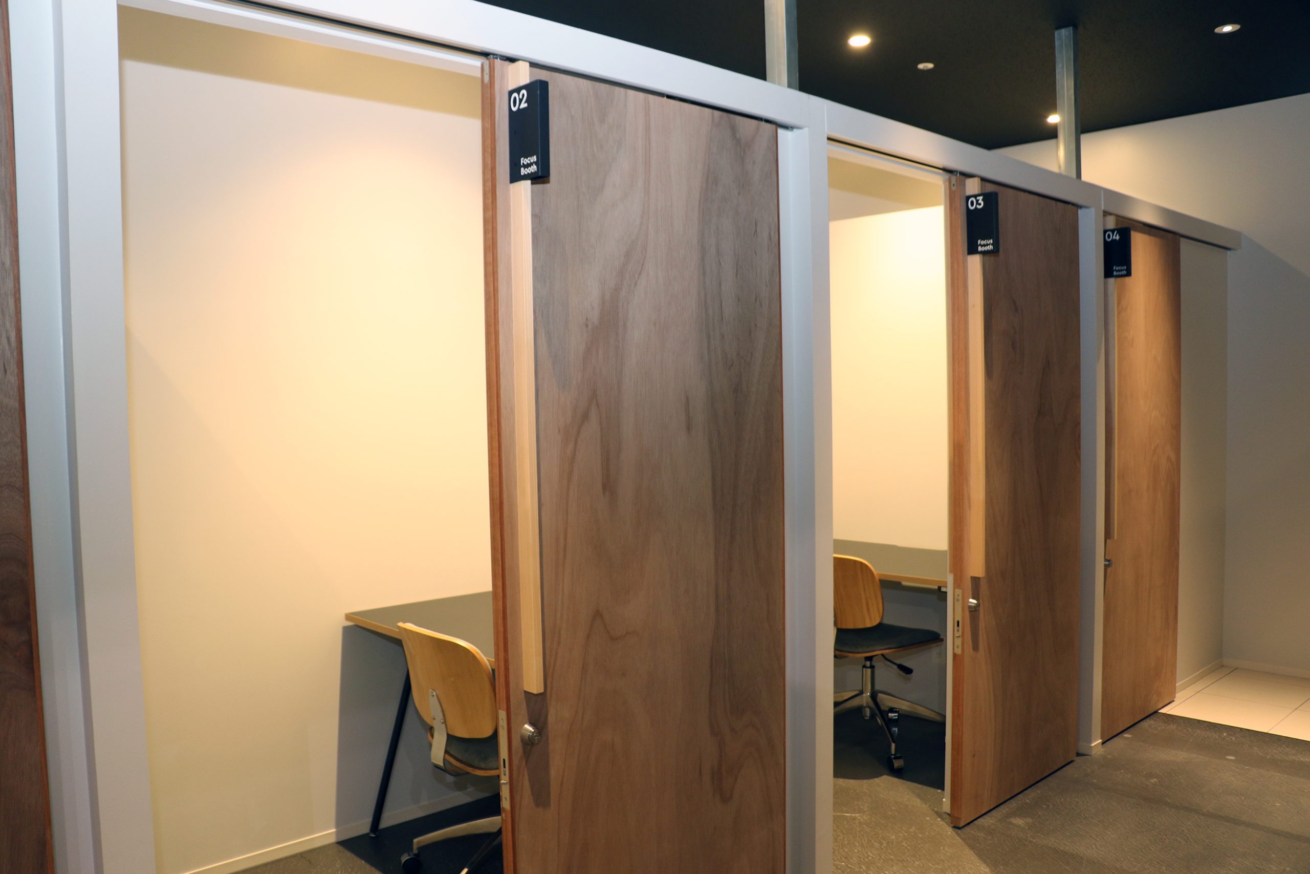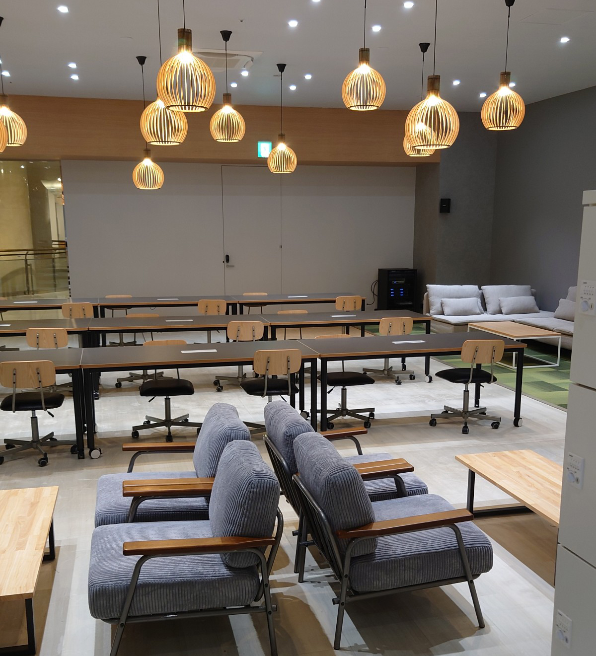 鍵のかかる1人用のフォーカスブース、ソファラウンジもあり、イベントスペースとしての利用も可能。無線WiーFi、電源、プリンターや冷蔵庫に電子レンジ、ウォーターサーバー、コインロッカーも設置。