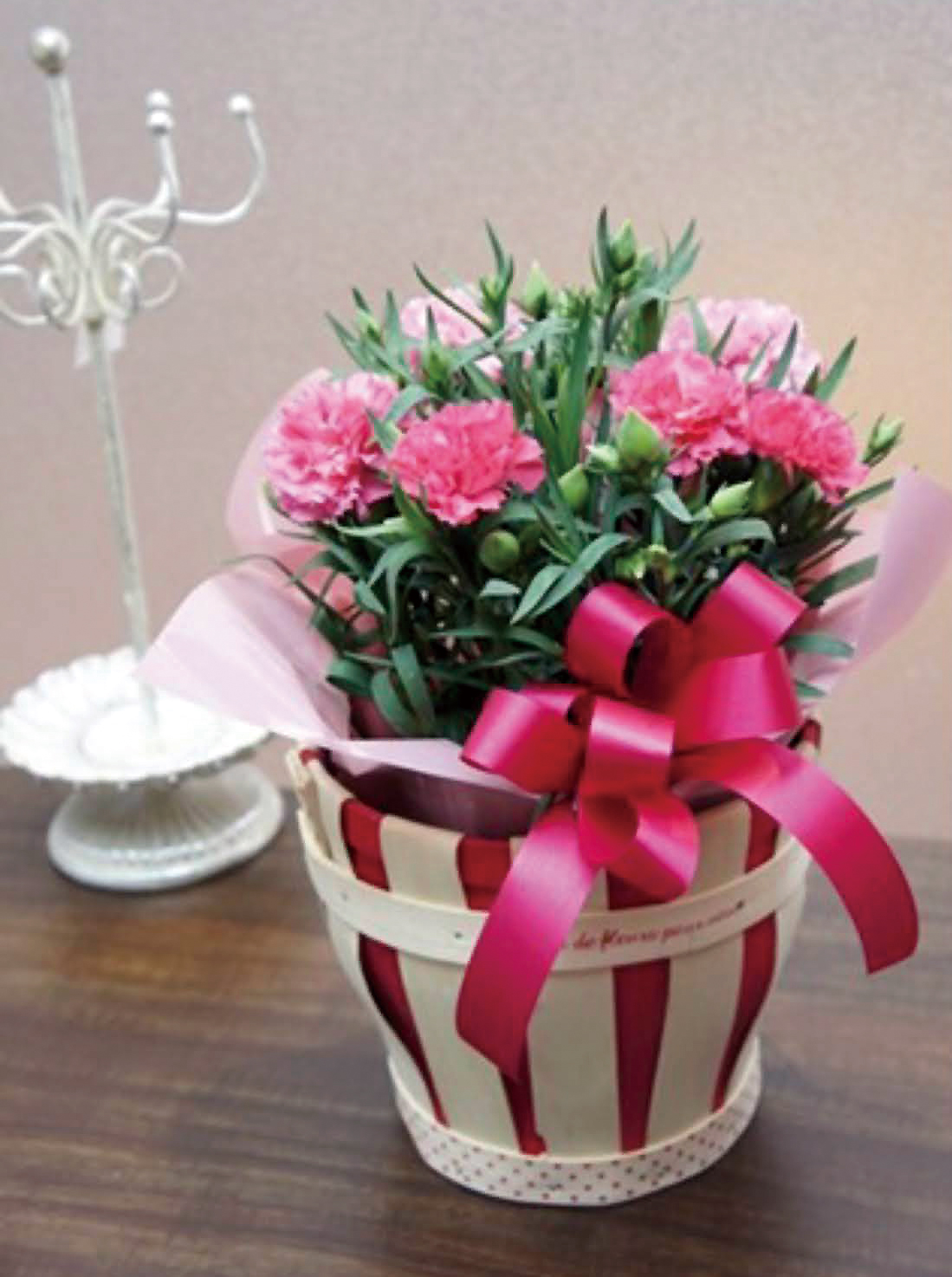 最近はアジサイやバラの鉢植え等、お母さんの好きなお花を選ばれることも多くなってきましたが、やはり1番人気はカーネーションの鉢植えです。