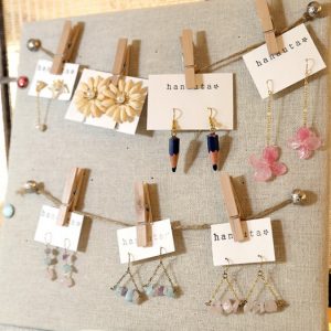 店内では、ハンドメイドアクセサリーも販売している。オーナーの手づくり品はもちろん、作家さんの作品など、オンリーワンの可愛くてお洒落なアクセが並ぶ。自分用にはもちろん、友達へのちょっとしたプレゼントや贈り物にも喜ばれそう☆