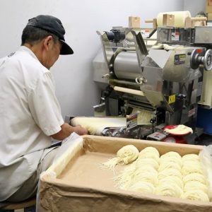 味、食感、香りを楽しめる『匠の技』の自家製麺。厳選された小麦粉数種類と、その日の気温や温度に合わせて配合する水で魂を込めて打ち上げ丸二日寝かせることによって、麺に命が吹き込まれる。コシのある麺はスープとの相性も抜群で噛む度に甘い香りを楽しむことができる。
