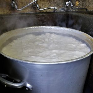 厳選された国産豚骨と水だけを長時間煮込んだスープ。手間のかかる丁寧な下処理で、癖のある臭いを抑え、旨味だけを搾り出したスープもまさに『匠の技』。焦げつかないギリギリの強火で、10分おきに混ぜ、スープと会話しながら命を吹き込む。1杯のスープができあがるまでに相当な労力と時間…だからこその美味さが表現されている。
