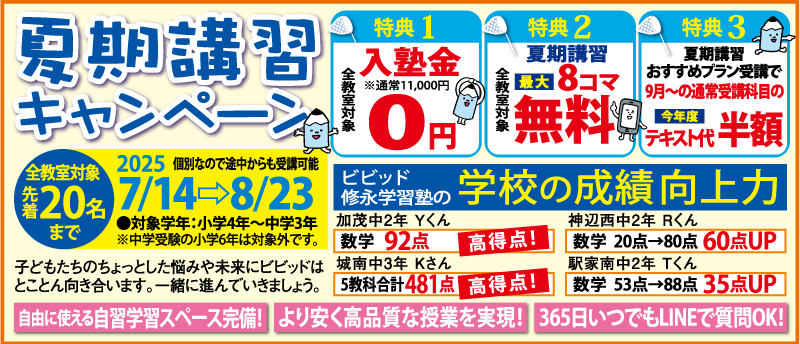 ぜひ、夏休みの学習や塾選びの参考にしてください。