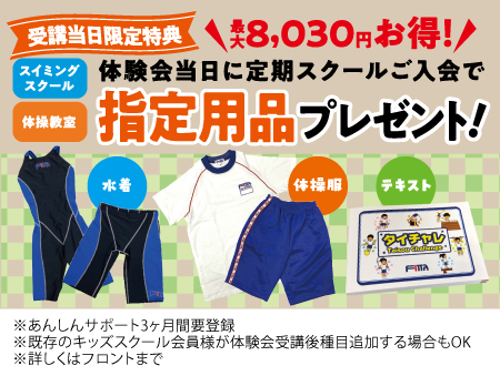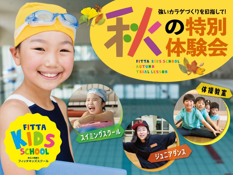 スイミングは全身をバランスよく鍛え、体の発育や呼吸力をサポート。体操は体をコントロールする力を育て、運動神経の基礎を整えます。ダンスはリズム感や表現力、記憶力を自然と伸ばせます。どれも成長期にぴったりの体験です。秋の特別体験会は1日1,000円。人気枠は早く埋まりますのでお申込みはお早めに!