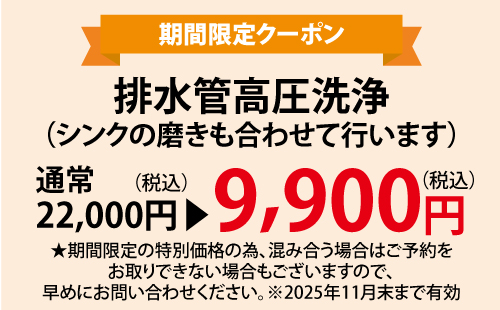 「最近ゴキブリを見かけた」「部屋の臭いが気になる」「水の流れが悪い」――その原因、実は排水管の汚れが原因かも。排水管は普段見えないため、汚れや詰まりが蓄積していても気づきにくく、放置すれば悪臭や害虫の発生につながることも。そんなお困りごとには私たち『タスカル』にお任せください!プロの高圧洗浄によるクリーニングで住まいの内側もリフレッシュします!今なら無料お見積り実施中です。