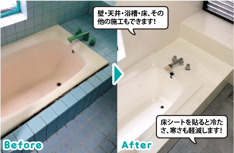 長年使ってきたお風呂。少しずつできたひび割れや落ちない汚れ…でも諦めなくて大丈夫!エイジュンの浴室リメイクなら、壊さず・取り替えずに新品同様へ再生可能。しかも工期は短期間、費用も最大80%OFFと経済的。さらに「滑らない床シート」にも対応。毎日の入浴が安心で快適になることで、暮らしにも笑顔が増えます。ユニットバスに入れ替えなくても浴室の塗装ですっきり綺麗になります。見積もりは無料なので、ぜひお問い合わせください!