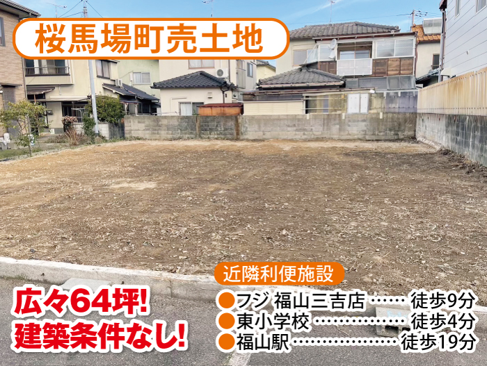 福山で土地や住宅のことなら、不動産情報保有力と、家づくりのノウハウを持つ【ダイフクホーム】にお任せください!地域に根差して約60年、ハイグレードな家からママ目線な間取り、地震に強い家など多種多様な施工事例があります。また土地や建売物件の数も豊富で、お客様のご要望や予算に合わせて提案できます!ただいま、人気の桜馬場町の土地がお安く登場!福山駅からも近く、小学校、保育園、コンビニは徒歩5分以内に♪周りは車の通りも少ないので子育て世代にも安全で人気の場所です。詳しくはお問い合わせください。