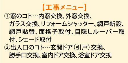 「夏は暑い、冬は寒い...」そのお悩み、窓リフォームで解決しませんか?古くなった窓を交換すると、エアコンの効きが格段に良くなり、無駄な冷暖房費を削減!冬場には不快な結露も大幅に軽減されます。特におススメは、今ある窓の内側にもう一つ窓を取り付ける内窓設置です。工事も1日で工事可能、すぐに快適な環境にリフォームできます。さらに、内窓設置には国からの補助金を活用すれば、賢くお得にリフォームが可能です。先進的窓リノベ事業は今年で最終年の補助金制度です。ぜひこのチャンスに窓リフォームを検討してみませんか?まずは、お気軽にご相談ください。