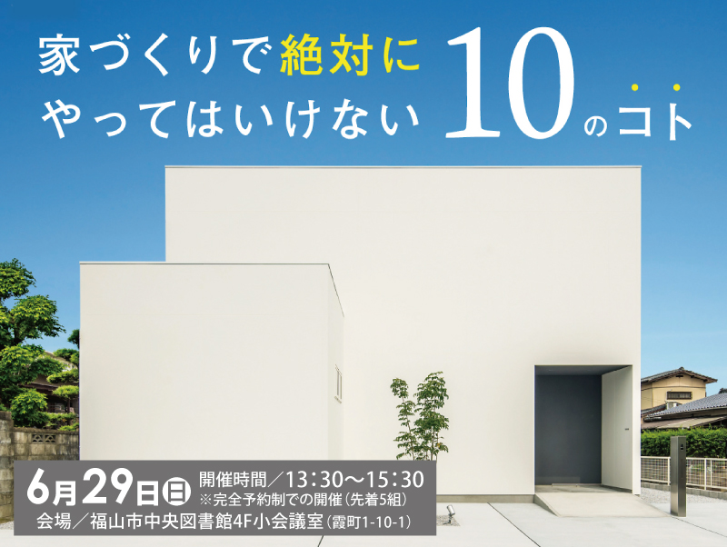 6月29日日の13:30~、中央図書館にて「家づくりのための特別セミナー講座」を開催します。新築を検討中の方、何も知らずに始めてはダメです。講座にご参加ください。他社が教えてくれない「住宅業界にはびこる無駄・不要なモノ」を住宅会社目線で赤裸々に公開します。資金計画のこと、間取りについて、防犯性や土地のことも詳しく解説。これまで参加者2,000人を越え、参加者満足度89.3%の人気のセミナーです。完全予約制で先着5組。会場にはキッズスペースもあるので、ぜひご夫婦でご参加ください。参加申し込みはお電話または下記ボタンのお申し込みページから。