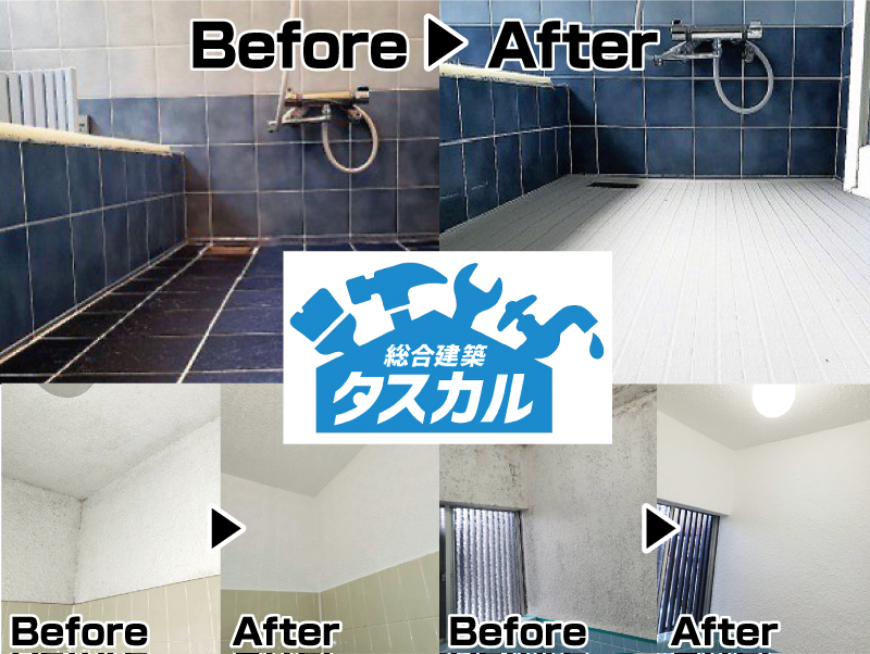 「浴槽の汚れやひび割れが気になる」「タイルのくすみが取れない」「そろそろリフォーム…でも高額なのはちょっと…」そんなお悩みには、費用を抑えて新品同様の仕上がりを実現する“浴室リメイク”という選択肢をご提案します。『総合建築タスカル』の浴室リメイクなら、浴槽・床・壁タイルなどの傷や汚れも、短期間で美しく再生可能。取り替え工事不要だから、費用も工期もグッと抑えられます。様々な素材や状態に対応できる技術力が強み!「そろそろ」と思った今がチャンス!まずは無料見積もりで、お風呂の再生プランをご相談ください。
