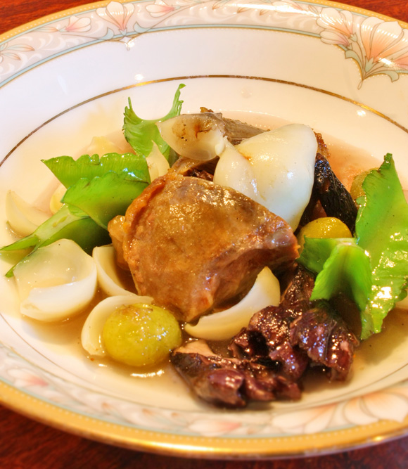 気がつくと食材は五色(赤、緑、黄、白、黒)のバランスのとれた献立が特徴の様な気がする。そしてオーナーの巧みな技と創意が今までにない中国料理に仕上がっている。
