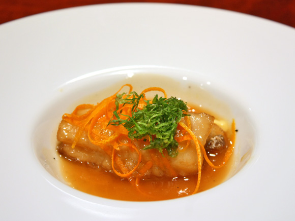 オレンジの持つ甘酸っぱさが、軽く揚げてある太刀魚の