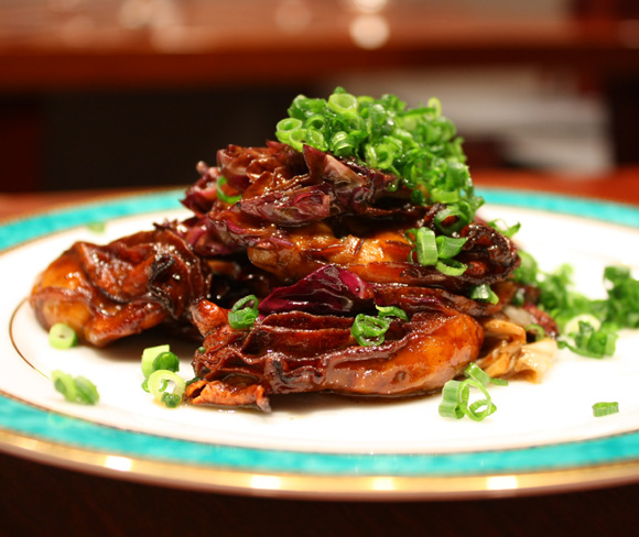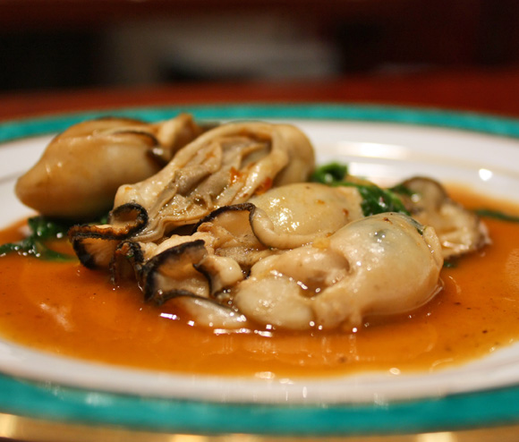 「おまたせしました!牡蠣ですが、辛し味噌炒めと 辛し香り炒めの二品です」