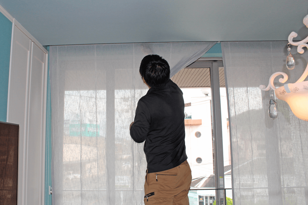 カーテンと床の距離など細かい部分を最後まで一切妥協をせず、責任持って仕上がりのチェック、確認をする姿…う〜ん!流石プロ…!