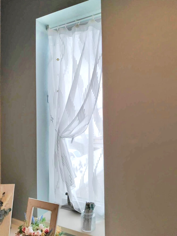 さらに手前のレースカーテンを遮光性と保温効果を持ったカーテンに交換。