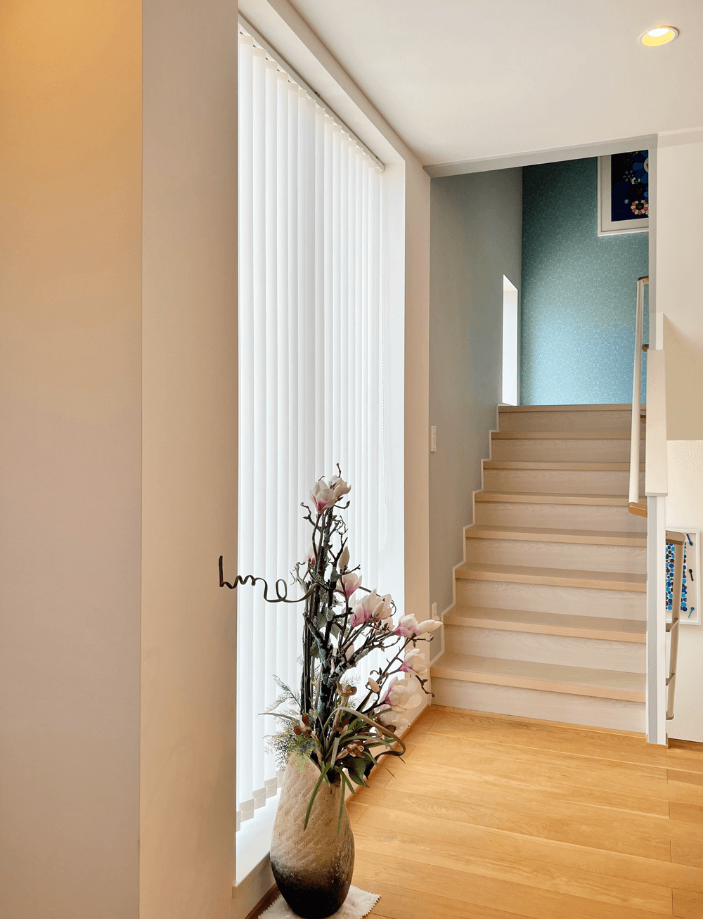 こちらは2階・3階のホールの窓のブラインド施工。