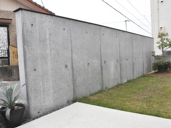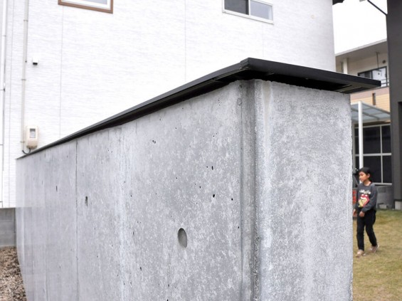 コンクリートの壁には笠木を設置してあります。奥様が「このデザインいいな」と思った住宅の壁を覚えておいてグーグルマップで検索し、「こんな風にして」とお願いしたそうです。そのときは、これが雨除けになるとは露知らず。水垢やコケ汚れから壁を守ってくれる役割を持つことを知り、「本当に付けて良かった!同じような壁を作りたいと思っている人には絶対におすすめです」