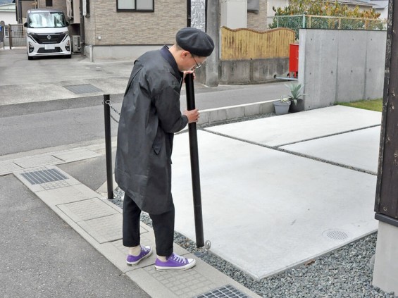 予算内に収めるため、車止めのポールは取り外しができるタイプを選択。「外していたときに蓋をし忘れていて、近所の子にバラスをいっぱい埋められ、取り出すのに苦労した」とほのぼのエピソードも披露してくれました。