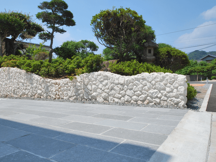 坂本さん:はい。形も大きさも不揃いの石を、それぞれの噛み合わせを考えながらバランス良く積み上げて、どの角度からも美しさを感じられるように仕上げました。表面からはわかりませんが、内部にモルタルを入れるなどしてしっかり安定させています。