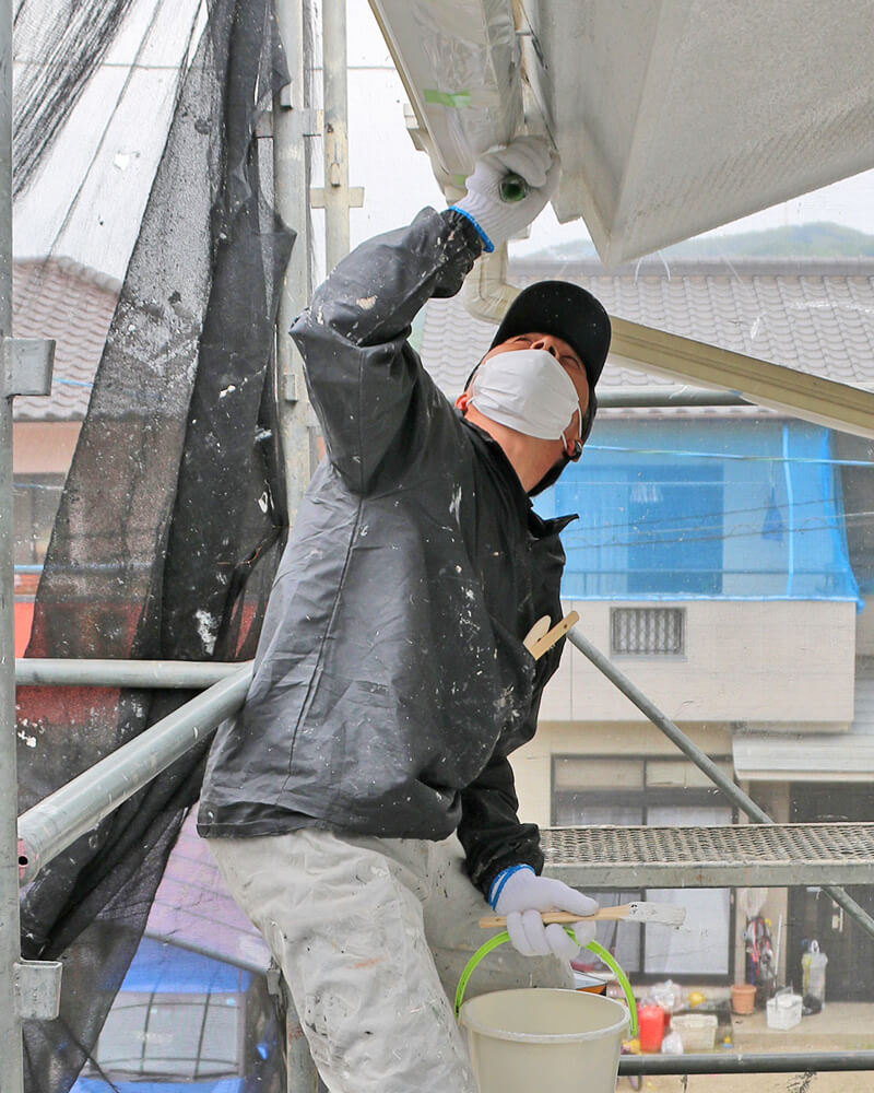 細かい作業が好きです。デスクワークではなく、体を動かす現場仕事が好きです。塗る前の下準備で養生する(塗ってはいけないところの境目などにマスキングテープを貼る)ところや、完成後は見えない下地、雨樋の裏側を刷毛で塗るところとか。