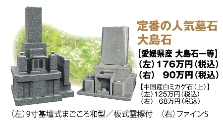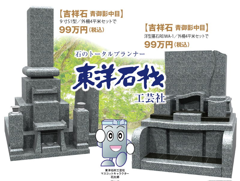 今夏、販売開始されたばかりの墓石の新石種【吉祥石】は、高級石の庵治石中目石に極似で、和墓洋墓どちらでも可能な上品な色合い。品質保証のできる材質ながら、年末まで特別セールで驚きの価格に!外柵セット4平米セットで99万円(税込)は今だけです。
